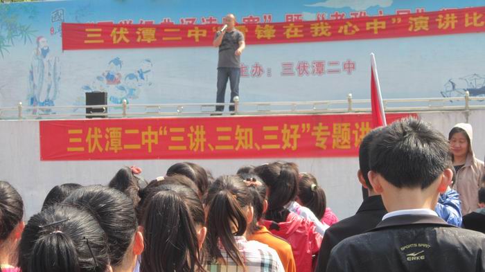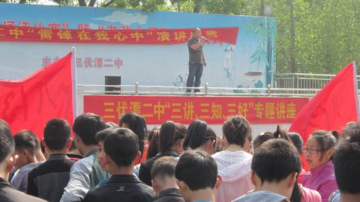 2014年4月9日,三伏潭二中的“三讲 三知 三好”教育系列讲座又开讲了,今天主讲的主题是“知惧怕 懂尊重”。刘校长通过深入浅出的讲解,让学生们明白如何懂得尊重他人,懂得是非善恶的道理。重点从学生的角度展开,在学校里要尊重老师,尊重同学,尊重校纪校规;在家里要尊重父母长辈,尊重左邻右舍;在社会要尊重法律法规,尊重他人。一个真正学会尊重的人,或者一个真正致力于学会尊重的人,他的人生一定是成功的人生!